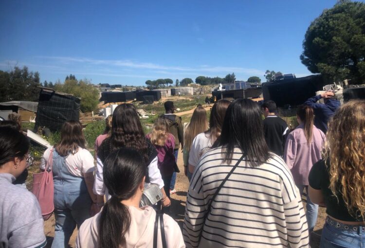 “El chabolismo –expresa Montaño– no sólo te anula como ser humano, sino que también te condena a la invisibilidad, al olvido, provocando en muchos casos graves problemas de salud mental, y también personas que llegan a perder la vida por las condiciones indignas en las que se vive en estos asentamientos”. Por esta razón, ha explicado la docente, “hemos querido trasladar a nuestros alumnos a estos estos asentamientos, para que puedan observar in situ las condiciones tan duras en las que se ven obligadas a vivir muchas personas migrantes”.
